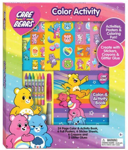 Care Bears Color Activity Set – Set includes a 24-page color & activity book, 6 full posters, 6 sticker sheets, 6 crayons, and 2 glitter glues. Age 5+.