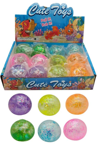 A colorful and eye-catching squeeze ball filled with crystal gel beads for a unique tactile experience. Each ball features a translucent design with vibrant glitter and gel textures inside, creating a fun visual and sensory effect when squeezed.
