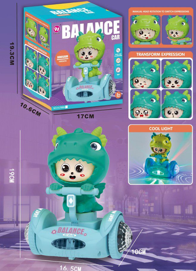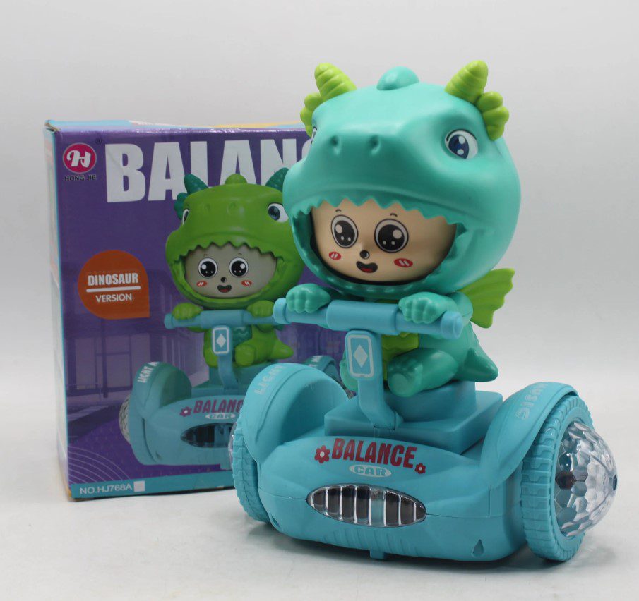 B/O Self Balancing Scooter w/ Sound & Light – Add a touch of fun and magic to playtime with this adorable Dinosaur Balance Car Toy, featuring a cute character in a dinosaur costume riding a self-balancing scooter that lights up and plays cheerful music. Kids will love watching it glide, spin, and dance, while the colorful lights and playful design spark their imagination and bring endless smiles. Perfect as a gift or a fun addition to any toy collection, this durable and safe toy is sure to be a favorite. Powered by 3 x AA batteries (not included). Age 3+.